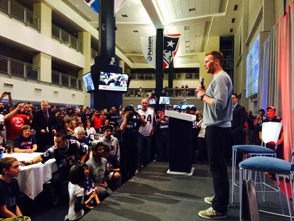 A draftot néző Patriots drukkereknek volt egy meglepetésvendégük, méghozzá Tom Brady.