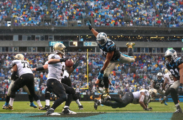A brutális esőzésben a várakozásoknak megfelelően szoros meccset játszott egymással a két csoportrivális, Drew Brees pedig ismét gyengén teljesített idegenben. Persze a fal sem segítette ki, újonc vakoldali tackle-je, Terron Armsted nem bírt a Panthers védőivel, a Saints pedig 5 sacket nyelt be csak az első félidőben. Végül mégis a Saints nyerhette volna meg a mérkőzést Jimmy Graham hatpontosával, de a Panthers alig fél perccel a vége előtt fordítani tudott Domenic Hixon elkapásának köszönhetően. Pedig a two minute warningnál úgy tűnt, a Panthers feladja a meccset azzal, hogy negyedik kísérletnél puntol, de végül Ron Rivera vezetőedzőnek lett igaza, hiszen visszakapta a labdát a Carolina és élni is tudott az eséllyel. A mérkőzés történéseihez még hozzátartozik, hogy Kenny Vaccaro, a Saints safety-je, és Steve Smith, a Párducok elkapója is megsérült, állapotukról később lesz bővebb információ, de a sejtések szerint Vaccaro a bokáját törte, Smith pedig a combhajlítóját húzta meg. A Panthers győzelmével saját kezébe vette a sorsát, ha ugyanazt játssza az utolsó héten, mint a Saints, megnyeri a csoportját.