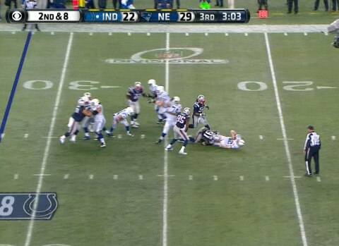 A Patriots remek gameplannel érkezett a találkozóra, hiszen a szeles, esős időben úgy döntöttek, lemondanak Brady zsenijéről és inkább futtatják a labdát. A terv pedig tökéletesen bejött, hála a fal remek munkájának és persze LeGarette Blountnak, aki 166 futott yarddal és 4 TD-vel vette ki a részét a 43-22-es sikerből. Az NFL történetében eddig mindössze egy játékos volt képes legalább négy futott TD-t szerezni egy rájátszásmérkőzésen: 1994-ben Ricky Watters 5 hatpontost jegyzett a Giants ellen. Blount három rövid yardos szituáció után bebizonyította, hogy képes a futóversenyt is megnyerni és a negyedik negyedben egy 73 yardos sprinttel verte bele az utolsó szöget a Colts koporsójába.