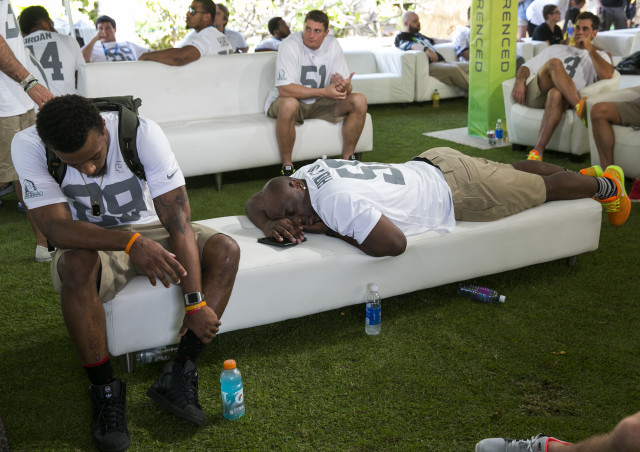 A Deadspin.com beszédes képválogatást tett közzé a kétnapos Pro Bowl fantasy draftról, amely a kiválasztásra váró játékosokat ábrázolja. A szervezők Hawaii-on is szerették volna megtartani a klasszikus draftformátumot, ezért létrehoztak egy úgynevezett Green Roomot, ahol a Pro Bowl keret tagjai „izgatottan” várták, hogy vajon a sárga vagy a narancssárga csapatba kerülnek. Lássuk a körömrágós pillanatokról készült album legkifejezőbb felvételeit...