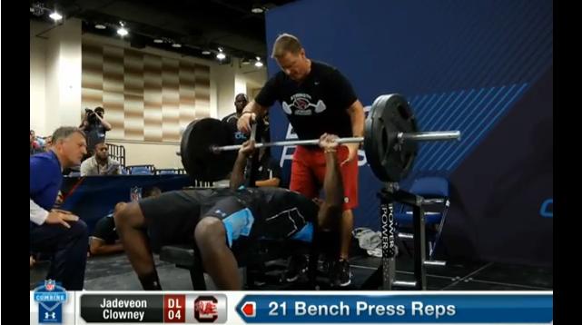 Igen, tudjuk, hogy ő defensive end és vasárnap az irányítók, az elkapók, valamint a futók mérettettek meg, de a fekvenyomás gyakorlatot már letudta a draft legjobbjának tartott védő, méghozzá csalódást keltő eredménnyel. Persze tudjuk, hogy a súly emelgetése teljesen más, mint egy éles meccs, ráadásul a mai napon a többi feladat során bőven lesz esélye kiköszörülni a csorbát, na de akkor is csak 21-et nyomott fekve. 32 D-line játékos zárt ennél jobb eredménnyel, mellettük még négyen képesek voltak hozni ugyanezt a szintet. A futók közül a legtöbbet Jerick McKinnon ért el, szám szerint 32-őt, de tegnap beszámoltunk róla, hogy a punter, Pat O’Donnell is nyomott 23-at. Félreértés ne essék, ettől még nem írjuk le Clowney-t, csak izgatottabban várjuk a 40 yardos futását.