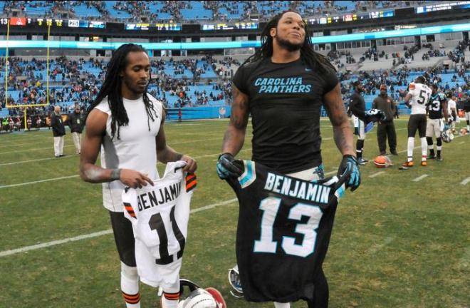 Travis Benjamin ezzel a teljesítménnyel már-már feledtette velünk azt a szomorú tényt, hogy a tavaly remekül debütáló, szintén hosszú afrofonatokkal játszó Panthers elkapót, Kelvin Benjamint idén sérülés miatt nem láthatjuk. Érdekesség, hogy a két játékos ugyanabban a városban született (Belle Grade, Florida), ugyanabba a középiskolába járt, gyerekként pedig együtt kergettek nyulakat (innen a gyorsaság), mégsem fűzik őket rokoni szálak egymáshoz. Persze, ahogy az a borítóképen is látszik, azért a mezcserés poént nem hagyhatták ki tavaly...