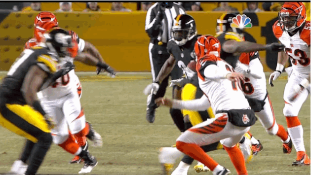 A vasárnap esti rangadón a Pittsburgh Steelers a Cincinnati Bengals együttesét fogadta és győzte le 30-20 arányban. A hazaiak harmadik TD-jét Antonio Brown egy 67 yardos punt return alkalmával szerezte meg, viszont a játék szépségét elhomályosította egy brutálisan kemény és szabálytalan blokkolás. A Steelers draftolatlan újonc linebackere, Terence Garvin az ellenfél punterének, Kevin Hubernek osztott ki egy óriási ütést, amelynek következtében a rúgójátékos csigolyarepedést, illetve állkapocstörést szenvedett és sérültlistára került, tehát idén már nem léphet pályára. Szakértői vélemények szerint a blokk egyértelmű sárga zászlót ért volna, de az igazi fájdalom a Cincinnati számára az, hogy a playoffért folyó harc közepén puntert kell keresgélnie a csapatnak.