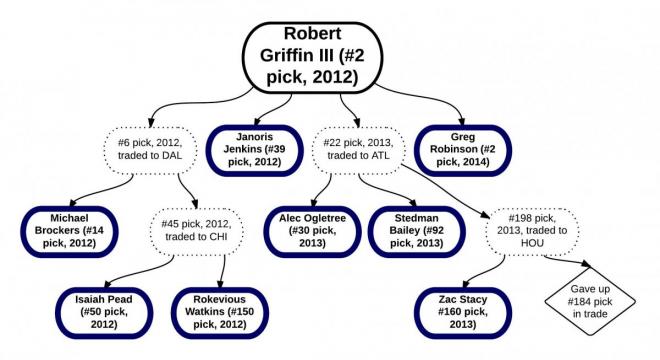 A 2012-es draft első körének második választási jogával szerezte meg Robert Griffint a Redskins. Ezt a picket azonban eredetileg a St. Louis birtokolta és csak egy csere keretében jöhettek előre a Rézbőrűek. A Rams ellenértékként megkapta a Washington 2012-es első, valamint második, a 2013 első, illetve a 2014-es első körös pickjét.
