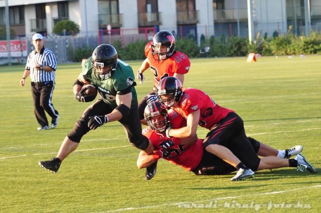 Sokan azt hihették, hogy Kovács Zsolt csapata akár simán felőrölheti az Építők Sportpályán Grátz Vilmos együttesét, ám nem így lett. Az egész szezonban minden bizonnyal most játszott a legjobban a győri egylet. Az elmúlt alkalommal Pápai Róbert révén már meglett az első futott touchdown, amellyel megtört a jég, ám ezúttal a futásoké volt a főszerep.