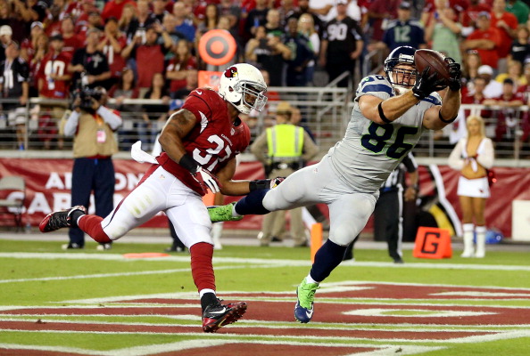 A csütörtök esti rangadó sok izgalmat ígért, de hamar kiderült, a Cardinals támadósora továbbra sem nőtt még fel a feladathoz, hogy egy Seahawks szintű védelemnek fejtörést okozzon. Ennek megfelelően a Pintyek a kezdés után szinte azonnal le is lettek parancsolva a pályáról, és önerőből az egész első félidőben tehetetlennek tűntek. Nem úgy a Hawks, amely rögtön az első támadásából touchdownt szerzett! A vendégek Wilsonnak és Lynch-nek köszönhetően négy kísérletből tudtak szerezni 3 first downt, majd Wilson futtában adott gyönyörű, 31 yardos TD-passzt Sidney Rice-nak. A Cardinals ezután próbált visszatámadni, de Carson Palmer idei hetedik meccsén is megdobta a már-már szokásosnak számító interceptionjét, pedig ha pár centivel hosszabb labdát ad, Larry Fitzgeraldot aligha érte volna utol a védő. A hazaiak ráadásul nagy árat fizettek a hibáért, hiszen a Seattle ismét képes volt végiggyalogolni a pályán. A figura ezúttal a tight endre, Zach Millerre jött ki, akit két ember között is megtalált Russel Wilson egy 15 yardos rakétával. 14-0-ra vezetett már ekkor a Seahawks, amely mindössze kétszer kényszerült harmadik kísérletre az első két drive alatt, és akkor is csak 3 yardot kellett haladniuk.