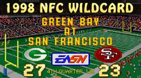 Az 1998-as Packers – 49ers NFC Wild Card meccs szimulációján keresztül nézhetjük meg, hogy a technológia megújulásával együtt hogyan fejlődött a legnépszerűbb amerikai focis játék, a Madden. A San Francisco győztes drive-ját élhetjük újra, igaz a játékosok az idő előrehaladtával változnak. Így aztán Steve Young Terrell Owens-nek adott TD passzát most Colin Kaepernick adja Vernon Davis-nek.