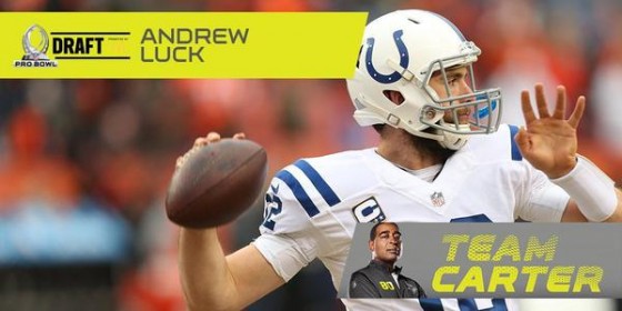Carter csapat választhatott először és Andrew Luck lett a szerencsés 1/1-es (vagy ahogy Watt bejelentette: „a nyakszakáll a karral”), míg Irvin együttese Tony Romot szerezte meg magának a második pickkel. A top 5-be még sorrendben A.J. Green, Odell Beckham és Jamaal Charles fért be, de a sorrendnél valamivel fontosabb a két gárda végső kerete, így nézzük inkább azt: