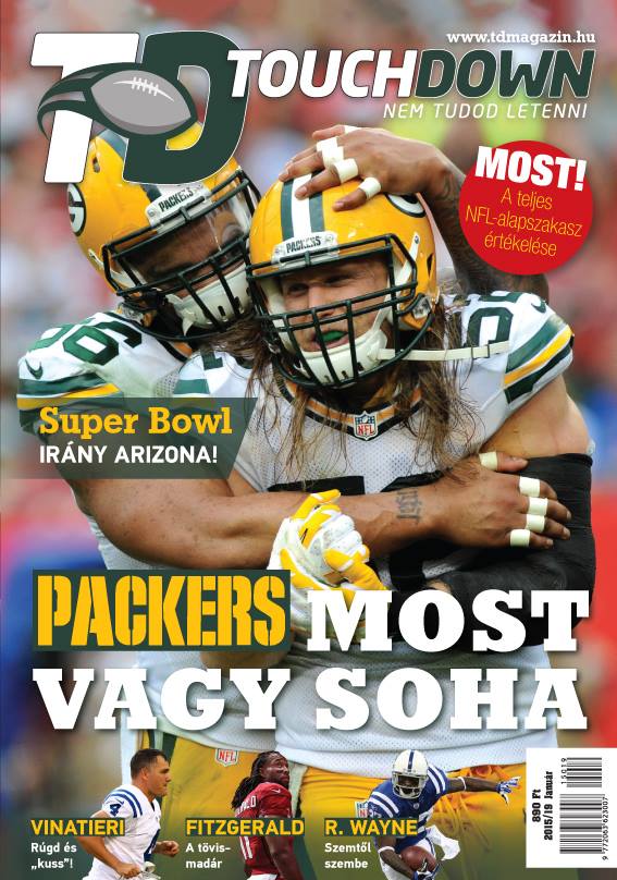 Már az újságárusoknál is kapható a TD Magazin januári száma, amelyben kiemelten foglalkozunk az NFL legkülöncebb csapatával, a Green Bay Packers-szel. A Colts rajongók számára is jól indul az év, hiszen magazinunkba a csapat két legendája, Reggie Wayne és Adam Vinatieri is bekerült. Szó lesz ezen kívül a jobb sorsra érdemes Larry Fitzgeraldról, valamint második otthonáról, a University of Phoenix Stadiumról, ahol az idei Super Bowlt rendezik. Természetesen ezúttal sem maradhatott ki az újságból a Csapatról-csapatra rovat, amelyben a gárdák decemberi teljesítményét értékeltük, illetve a posztermelléklet sem: ezúttal texasi hangulatban voltunk, így a Dallas Cowboys mellett J.J. Watt került az újság gerincébe.