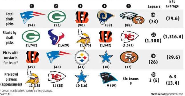 A The Florida Times-Union cikke azt vizsgálta, hogy mennyiben hibáztatható a rossz draft azért, hogy a Jaguars csak szenved az NFL-ben és a 2007-es szezon óta a rájátszás közelében sem járt a csapat. Kezdésként azonnal le is lőjük a poént, ugyanis az elmúlt tíz év draftjait vizsgálva igencsak szomorú eredményre jutottak a Jacksonville-t illetően.