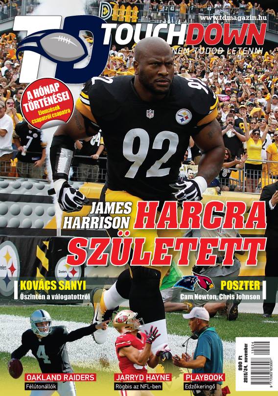 Ismét túl vagyunk a szezon felén, ami egyben azt is jelenti, hogy megjelent a novemberi Touchdown Magazin. Ehavi kiadásunk hasábjain nagyító alatt vizsgáljuk a 49ers futójátékát és a Raiders újjáépülését, de szó esik a veterán James Harrisonról és a Steelers védelméről is. Ezen kívül külön cikkben foglalkozunk az edzőmenesztések hátterével, a már megszokott Csapatról-csapatra rovatban pedig minden gárdáról olvashattok egy-egy érdekes sztorit, amely jól jellemzi az elmúlt hónap történéseit. A magyarországi amerikai futball kedvelőinek interjút készítettünk Kovács Sanyival, aki az idén debütáló válogatottról mondja el véleményét, posztereinken pedig Cam Newton és Chris Johnson kapott helyet.