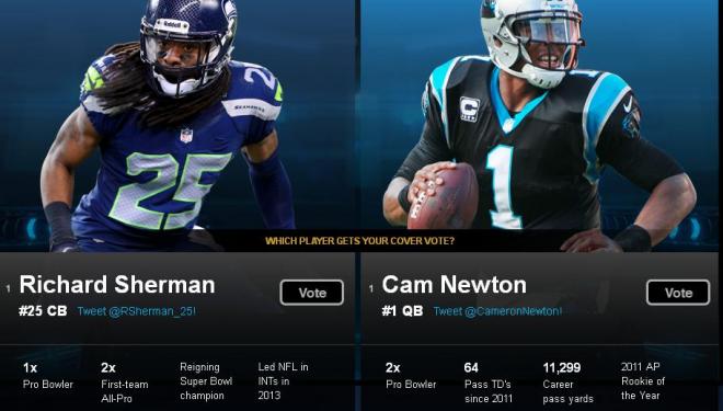 Legutóbb akkor foglalkoztunk a Madden 15 borítójáért folyó küzdelemmel, amikor még nyolc játékos volt versenyben. Ahogy azt a lenti kép is mutatja, azóta két kör zajlott le a szavazásból és már el is érkeztünk a döntőhöz, ahova a Seattle Seahawks cornerbackje, Richard Sherman, valamint a Carolina Panthers irányítója, Cam Newton jutott el.